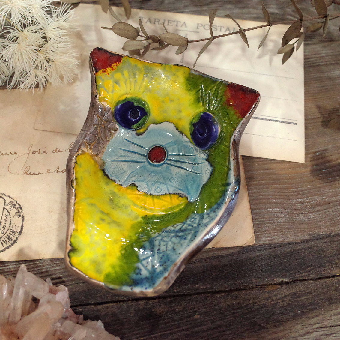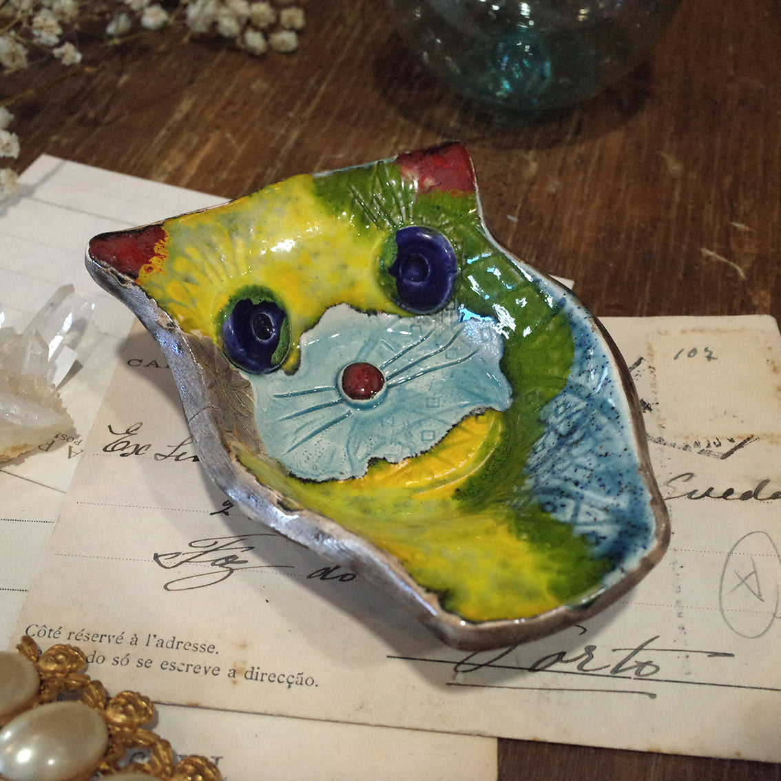 新品.葡萄牙帶回手工陶製品.貓咪造型小盤.手工彩繪陶盤.置物收納#收藏品