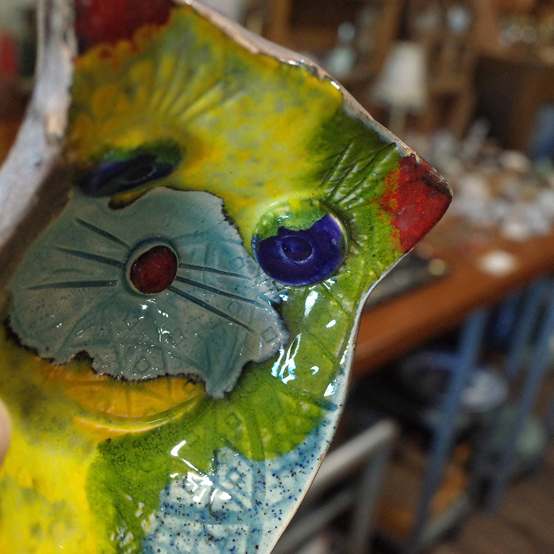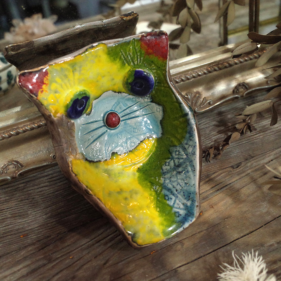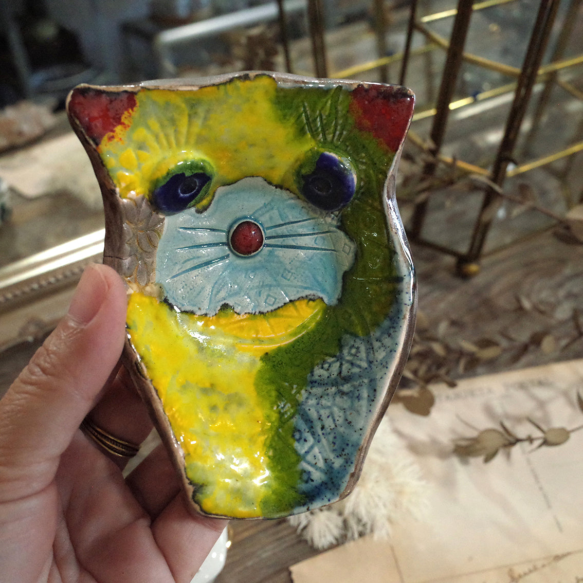 新品.葡萄牙帶回手工陶製品.貓咪造型小盤.手工彩繪陶盤