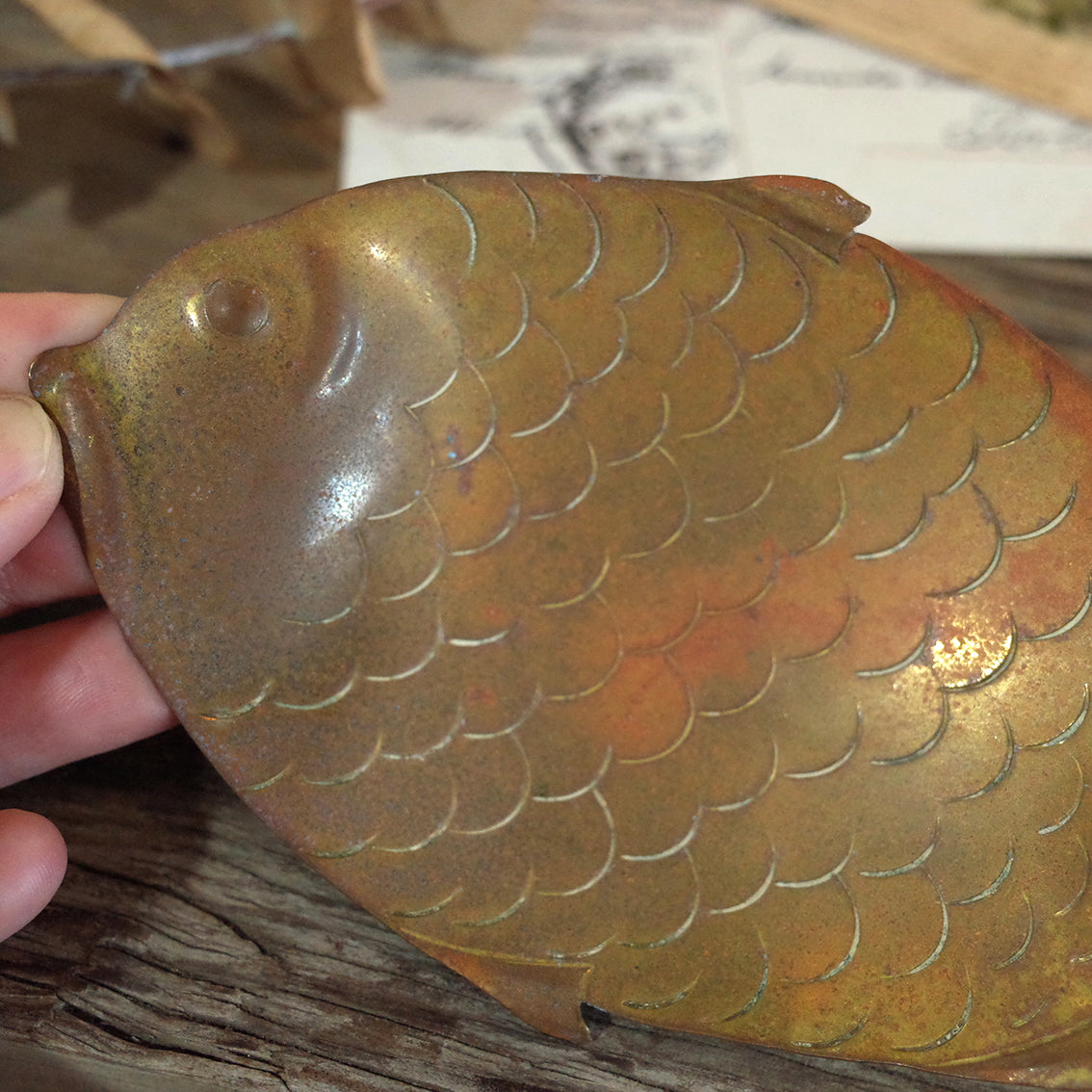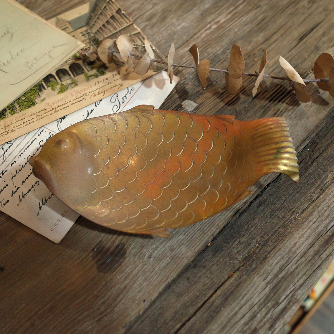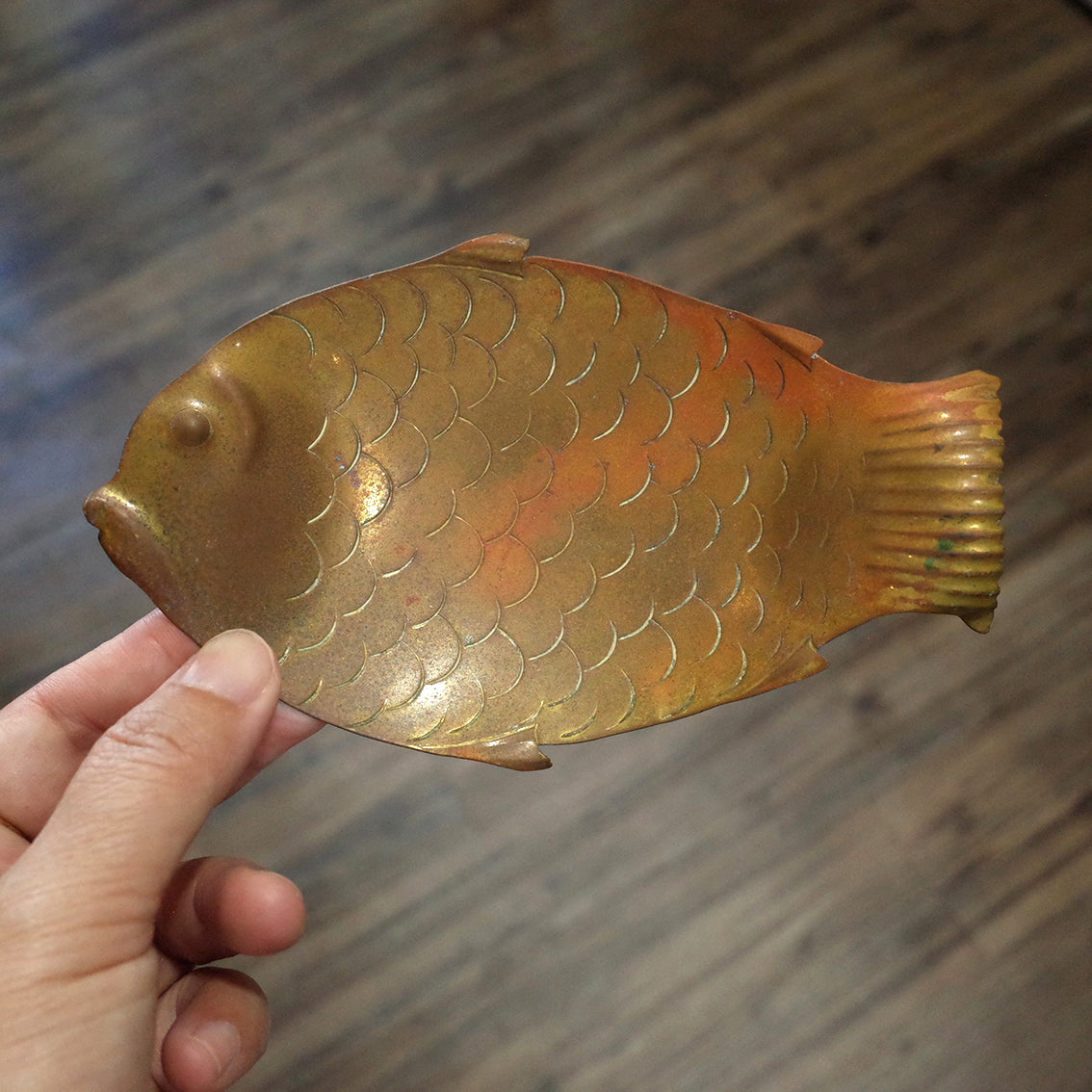 葡萄牙老件.早期手工黃銅魚造型小金屬盤.置物盤