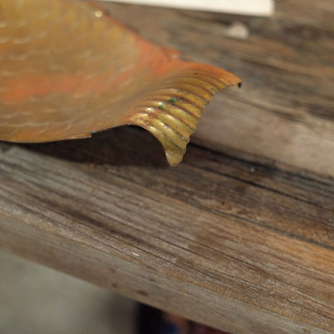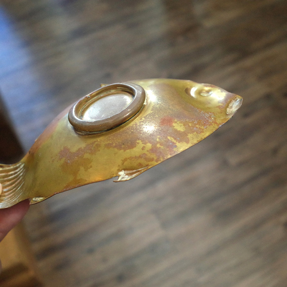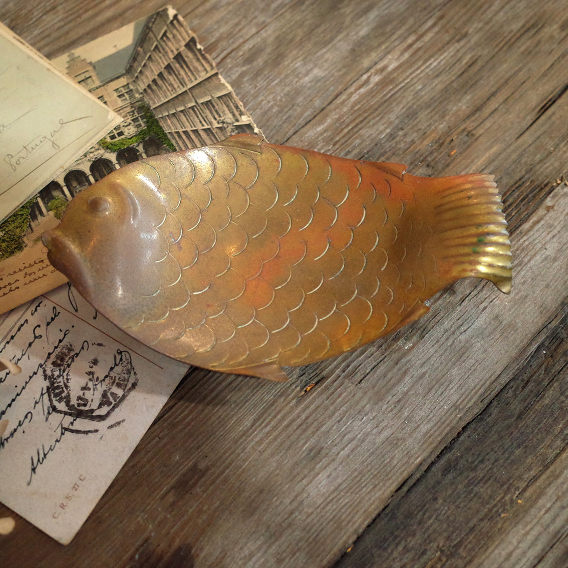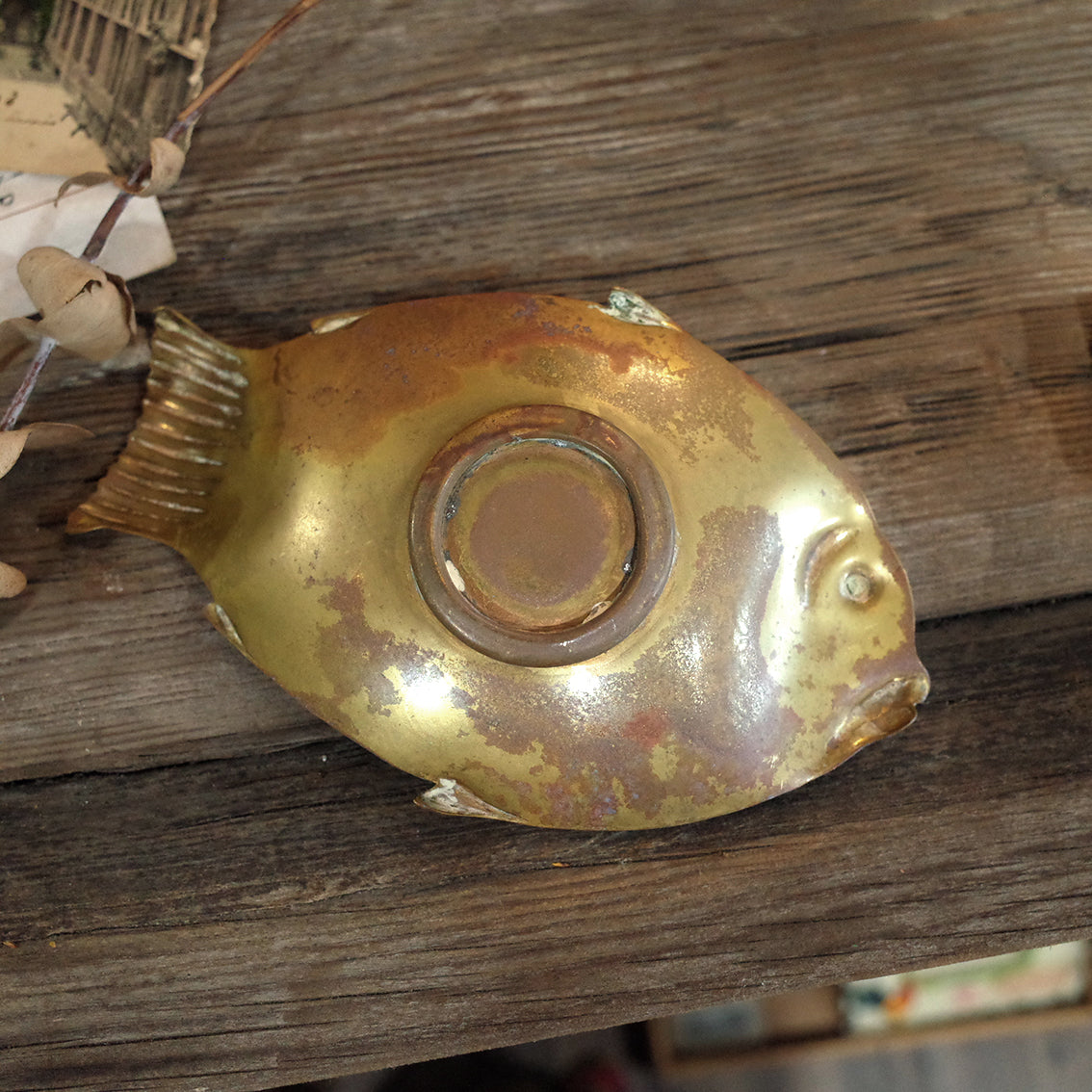 葡萄牙老件.早期手工黃銅魚造型小金屬盤.置物盤