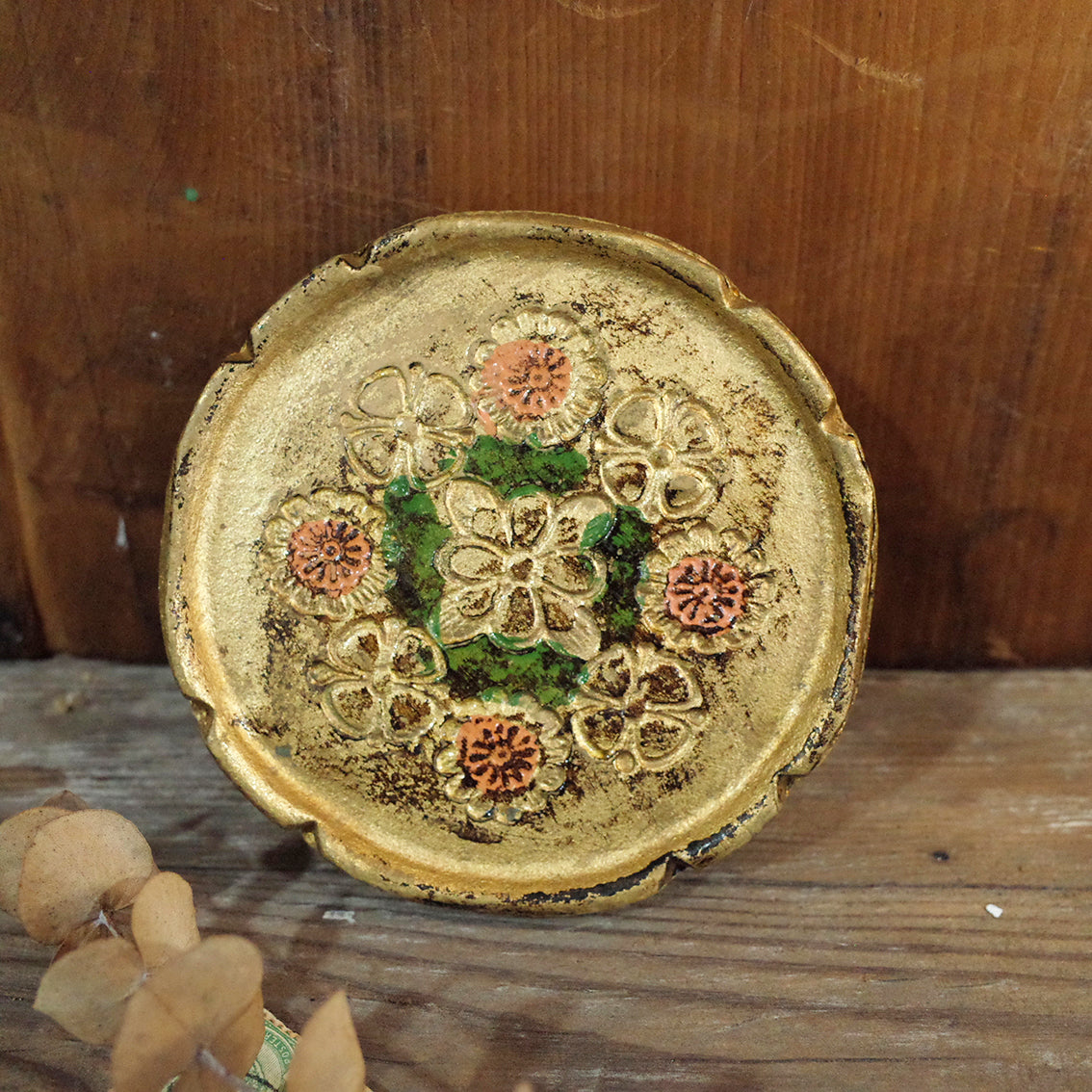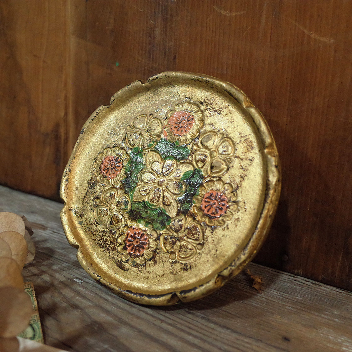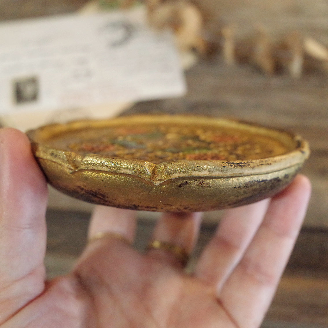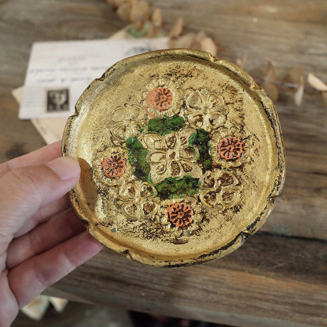在木器上施以金底彩繪的工藝,源於中世紀的宗教藝術傳統,後來廣泛應用於日常器皿的裝飾。既是實用的置物小盤,更是義大利手工藝文化的珍貴見證。