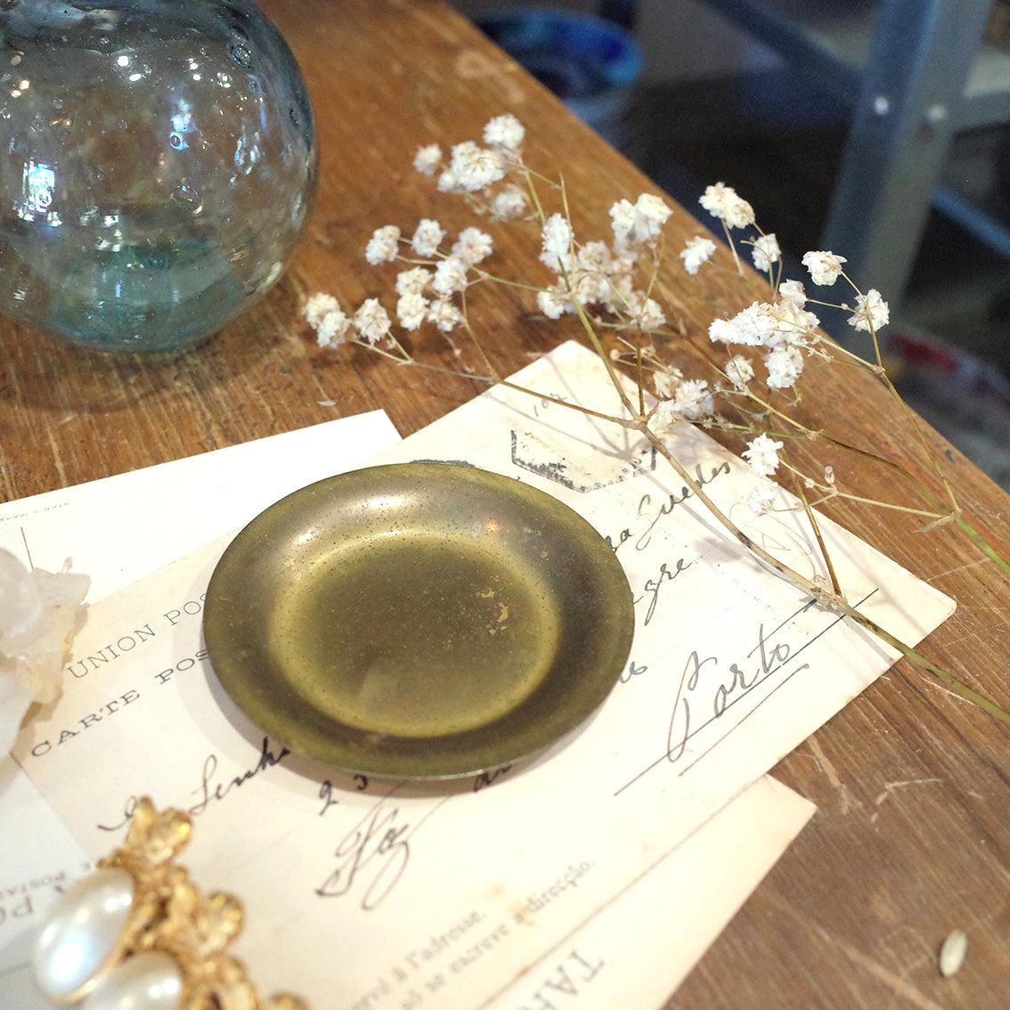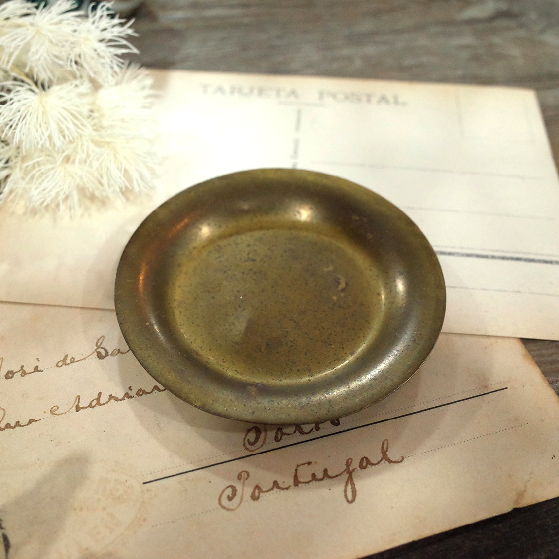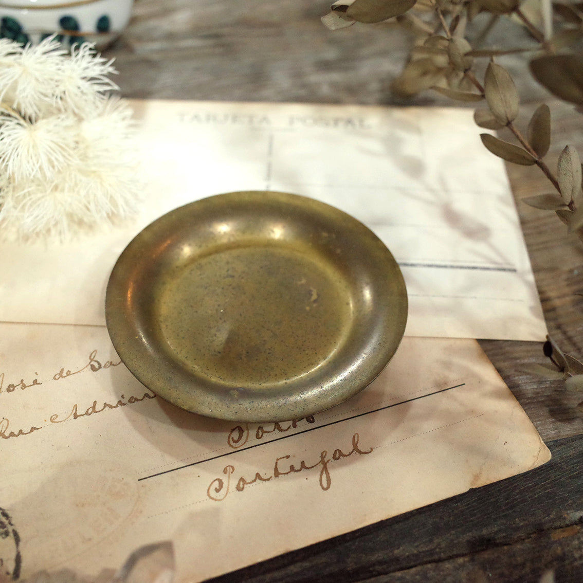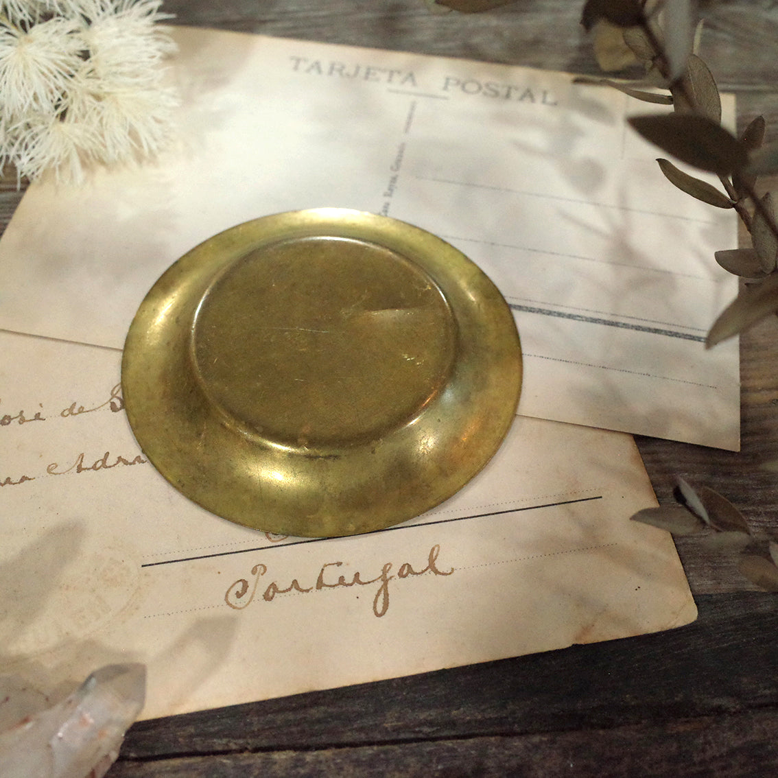 葡萄牙帶回老件.黃銅小盤.素面小淺金屬盤.一明顯凹線.尺寸小巧#收藏品