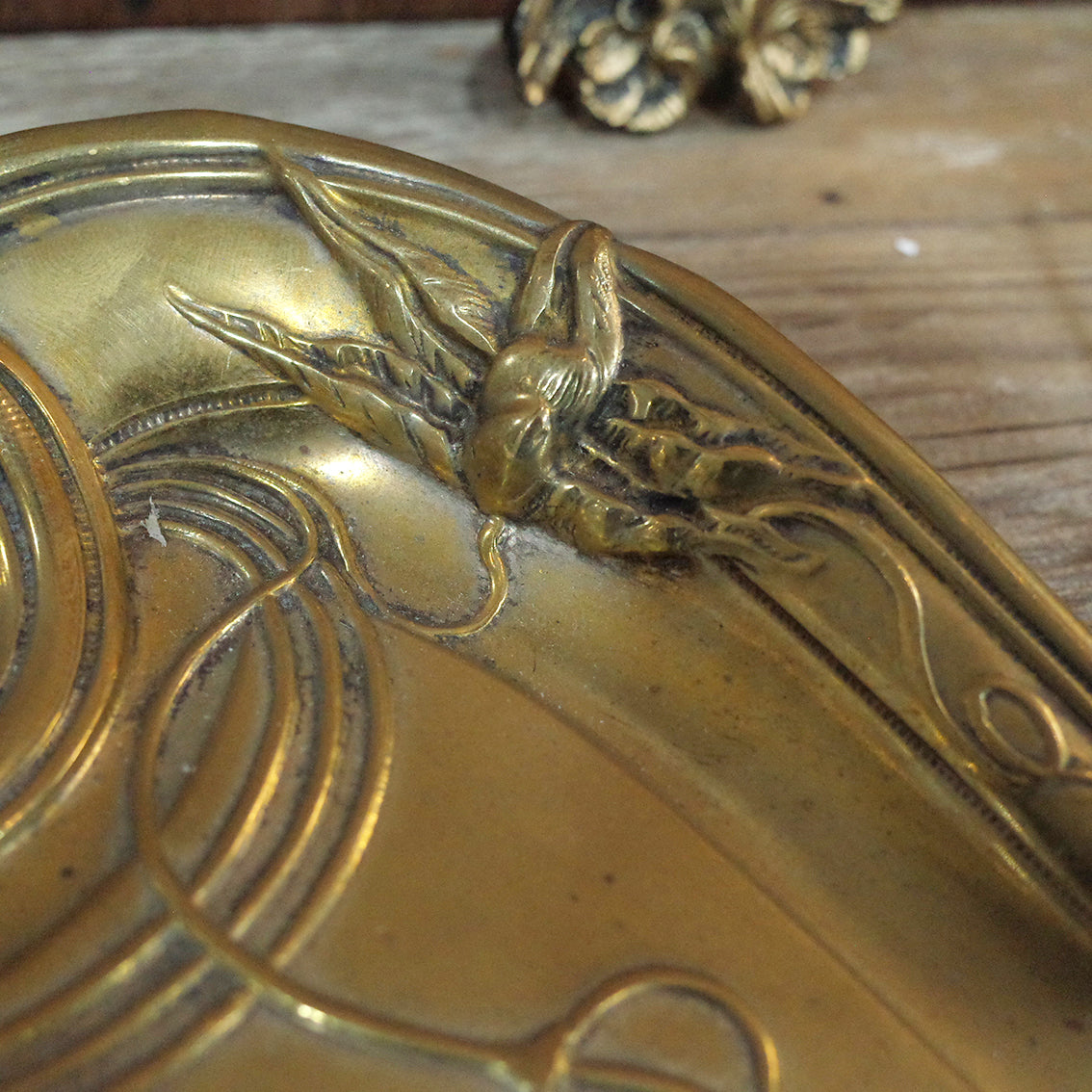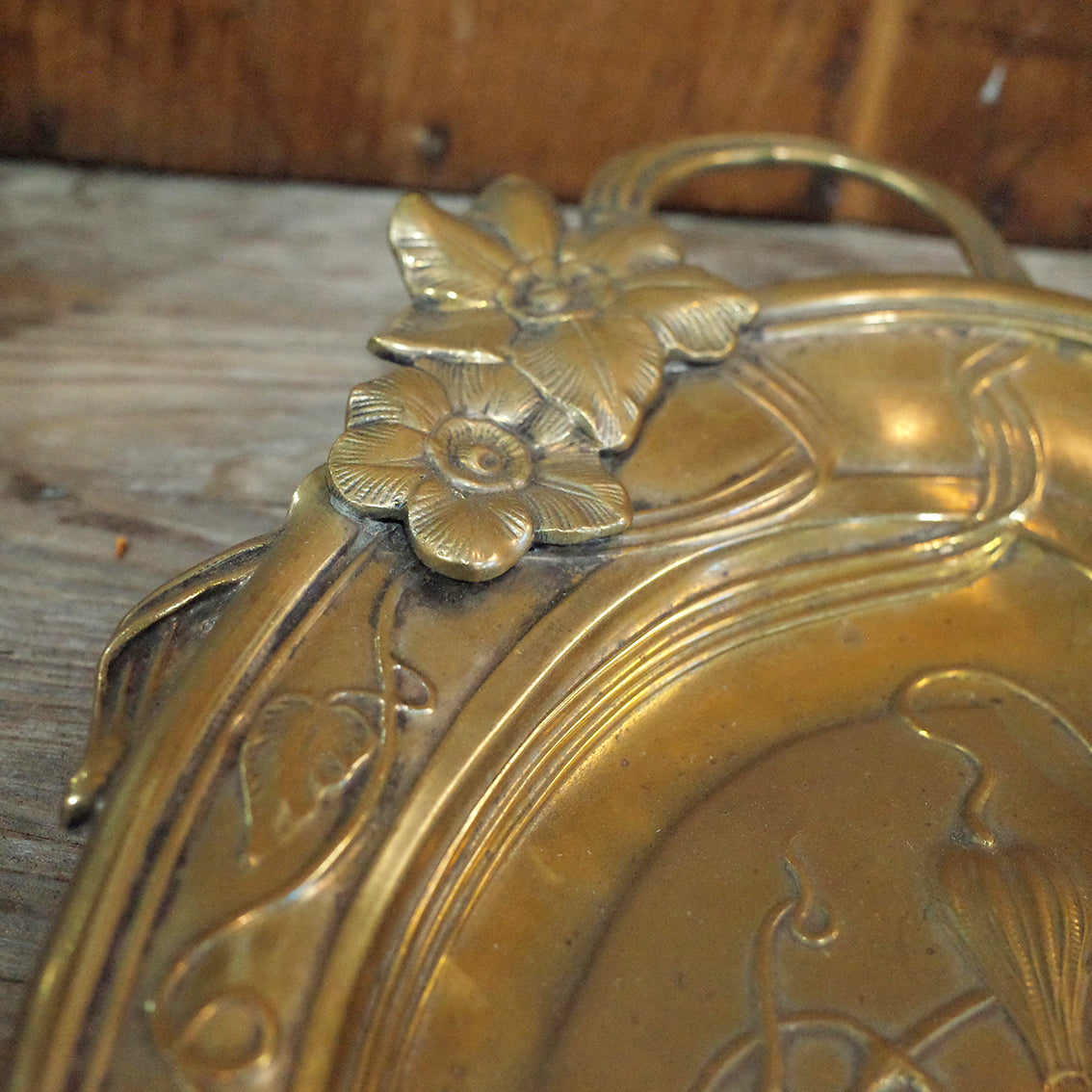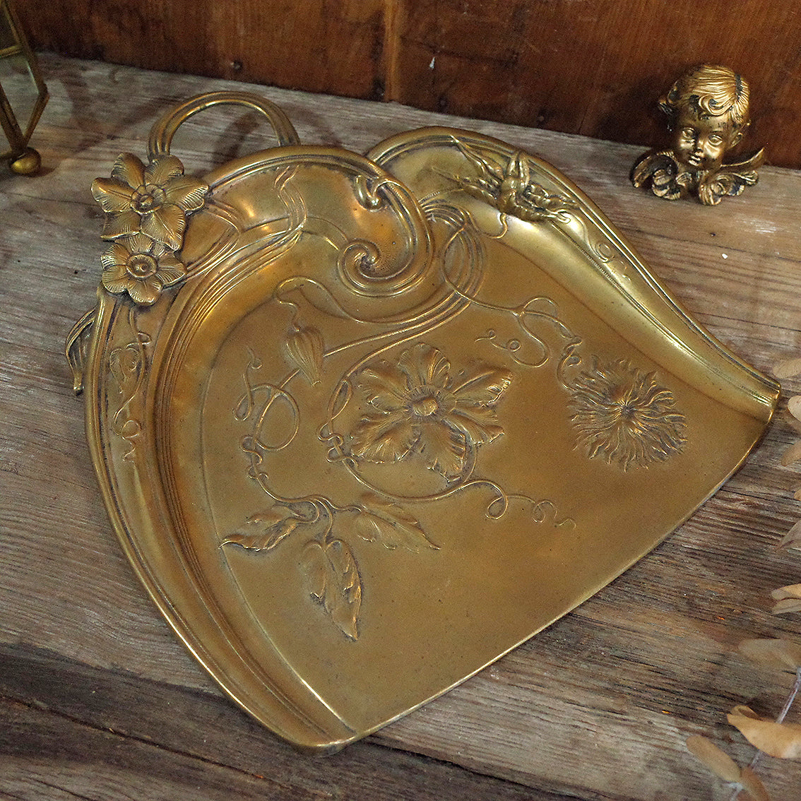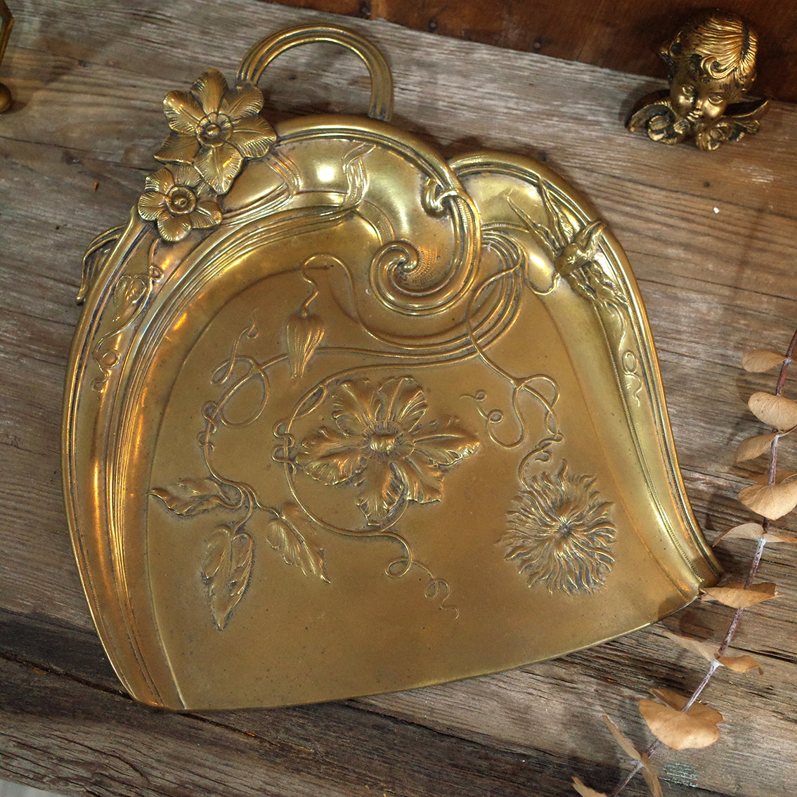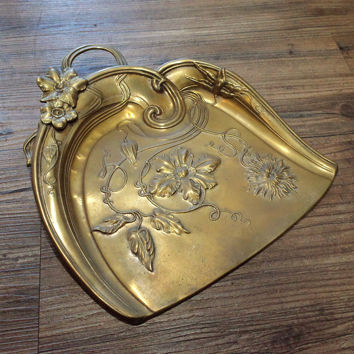 英國老件.古董黃銅花卉浮雕手提麵包屑紙屑小畚箕