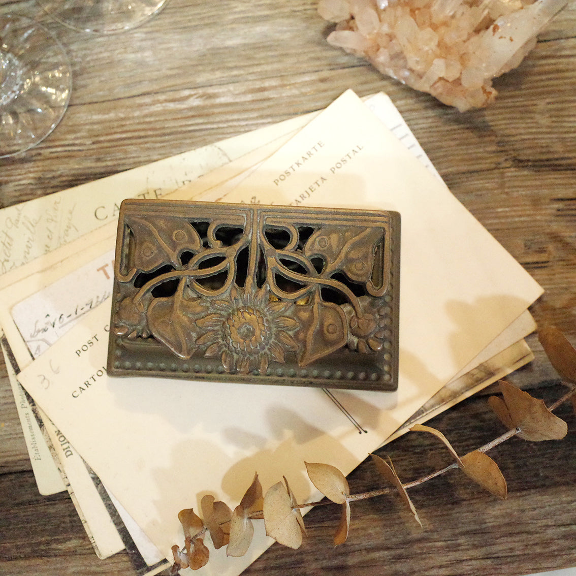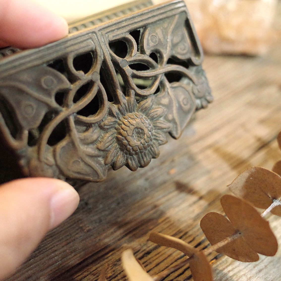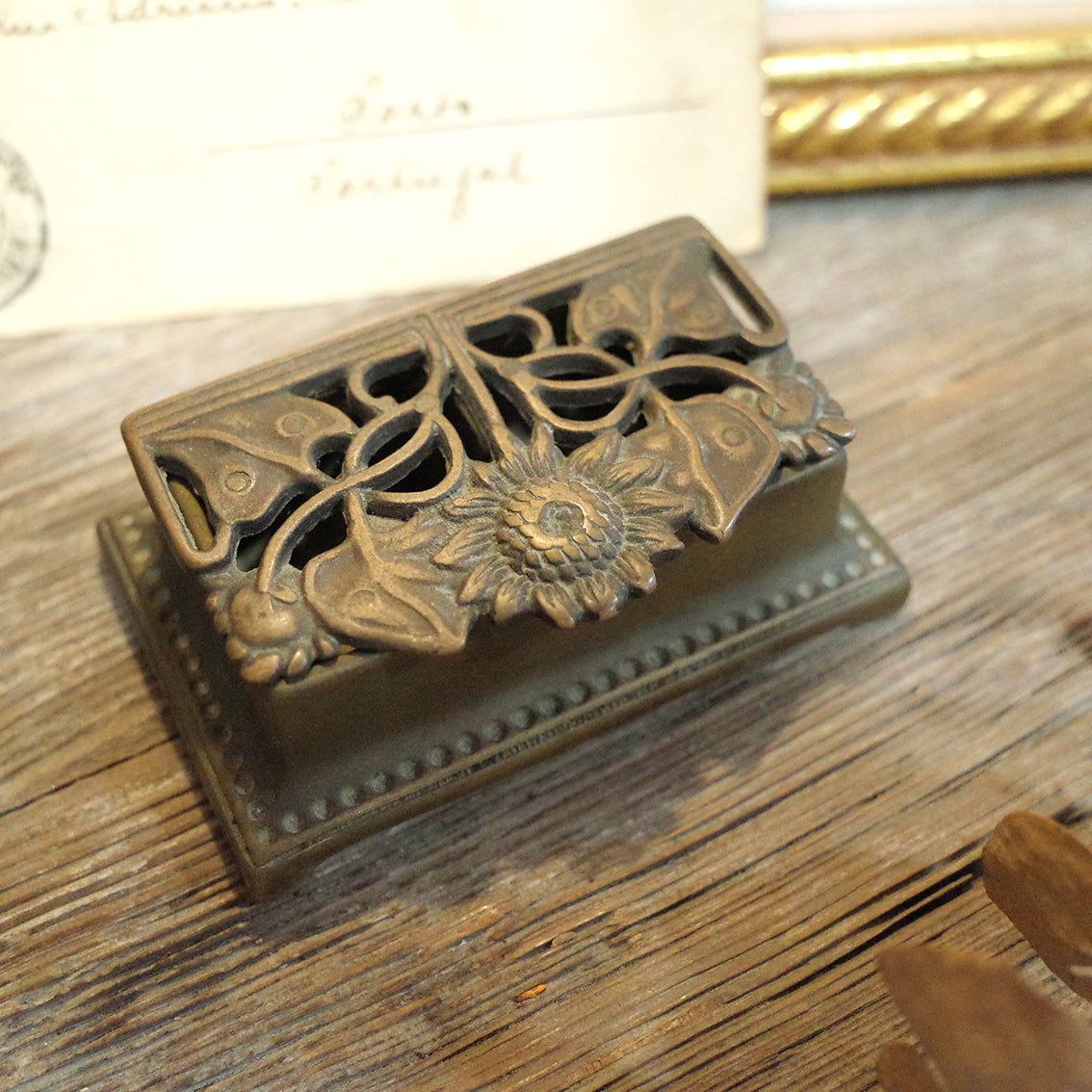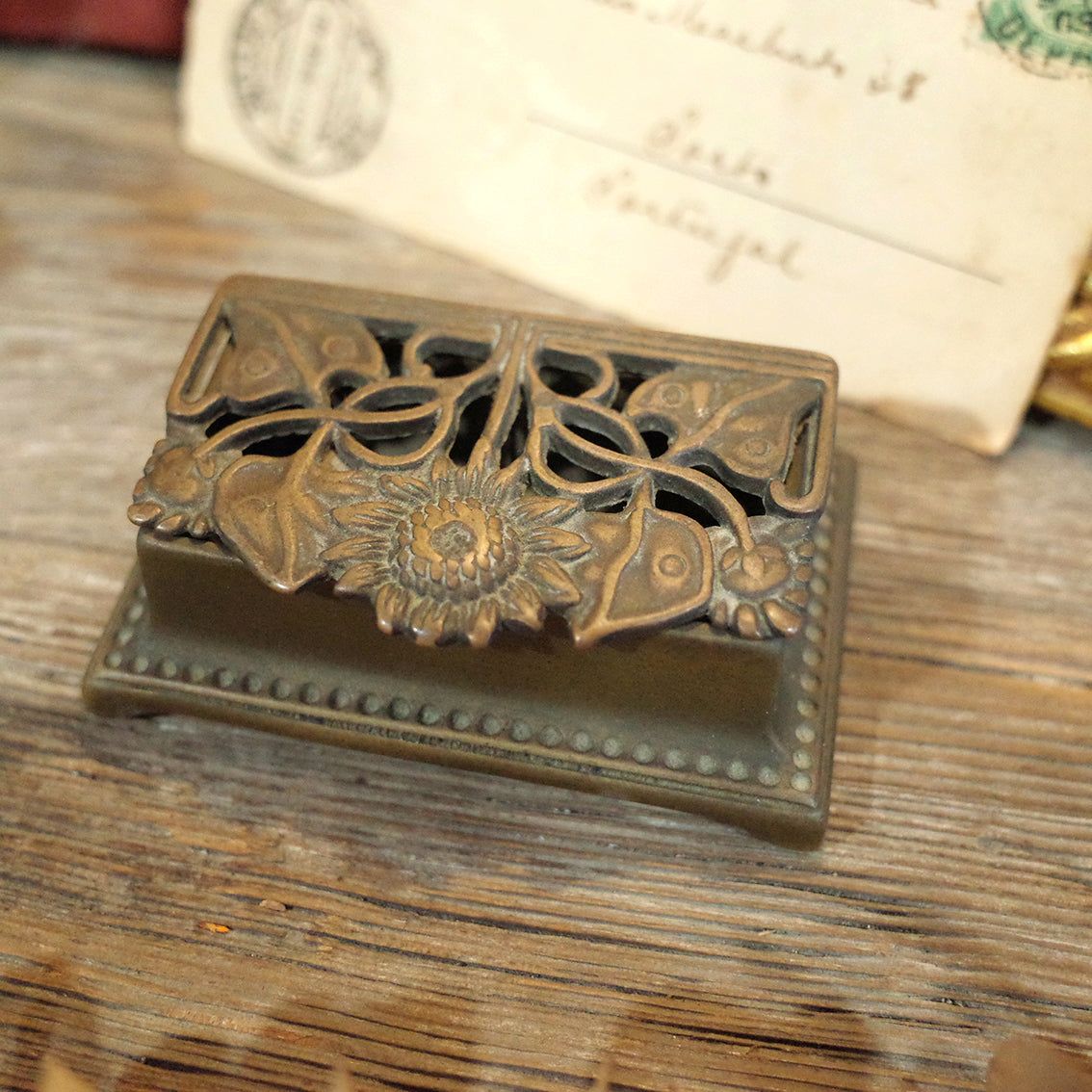 葡萄牙老件.銅製太陽花向日葵簍空浮雕郵票盒.文具小收納盒