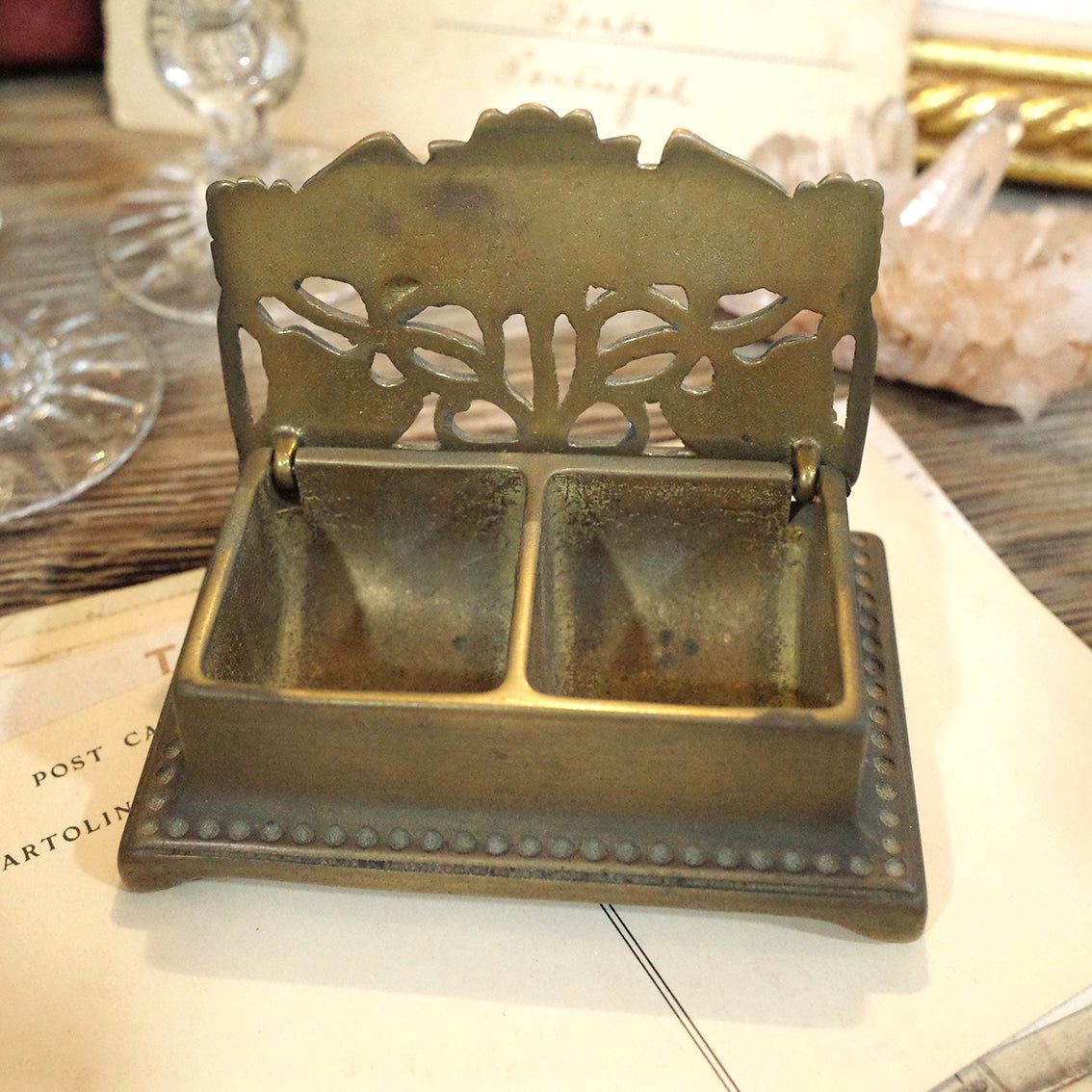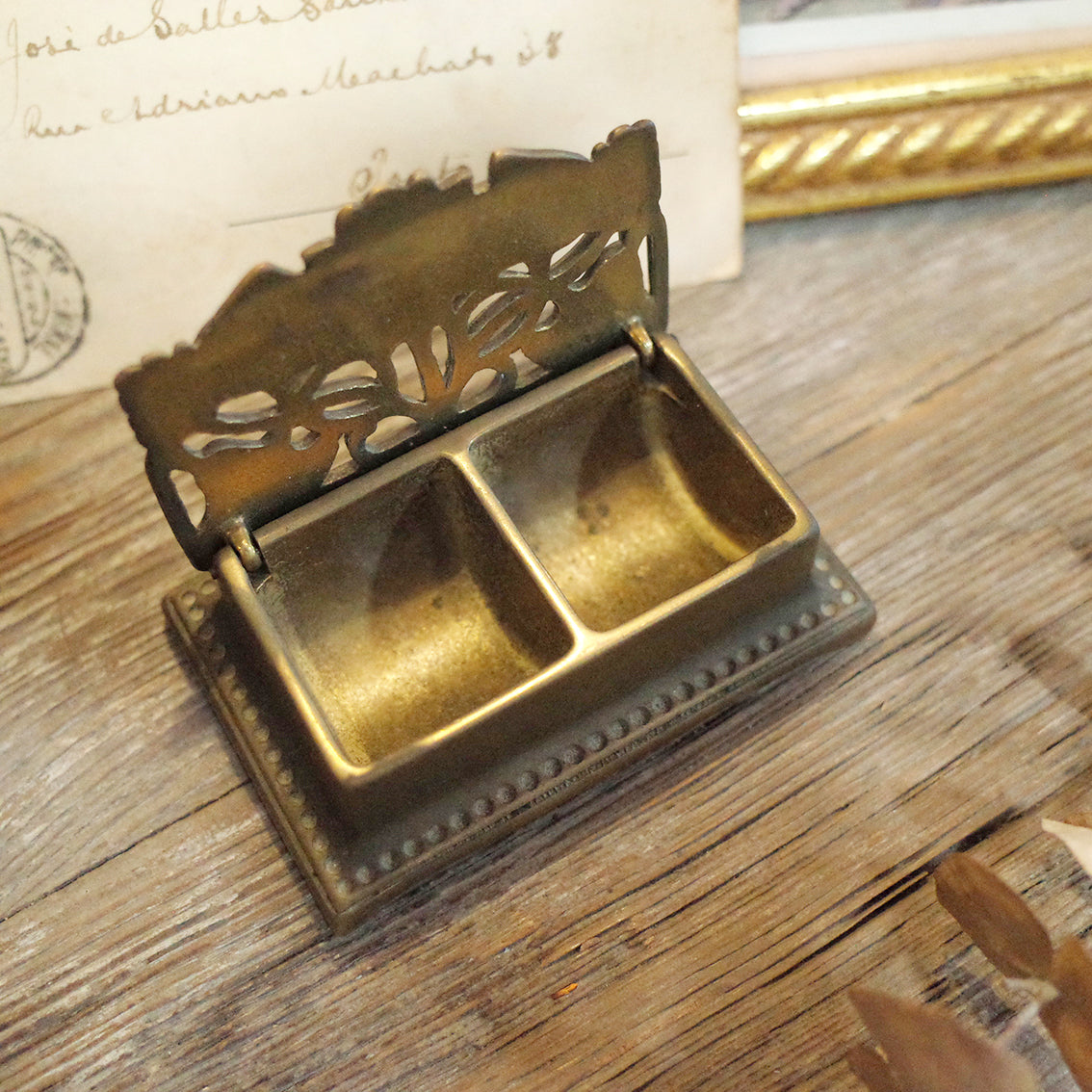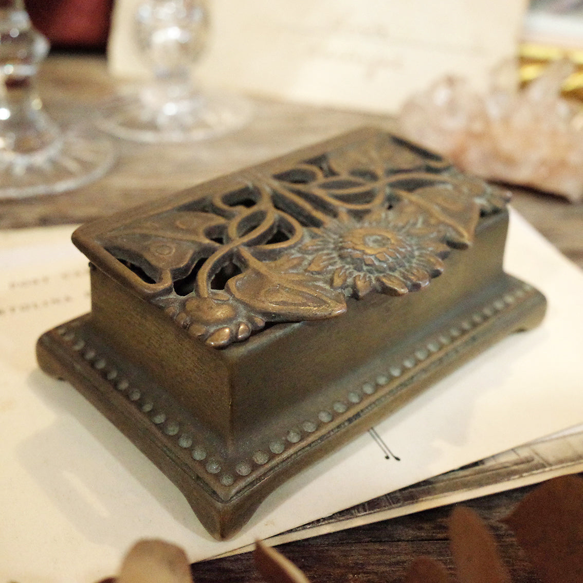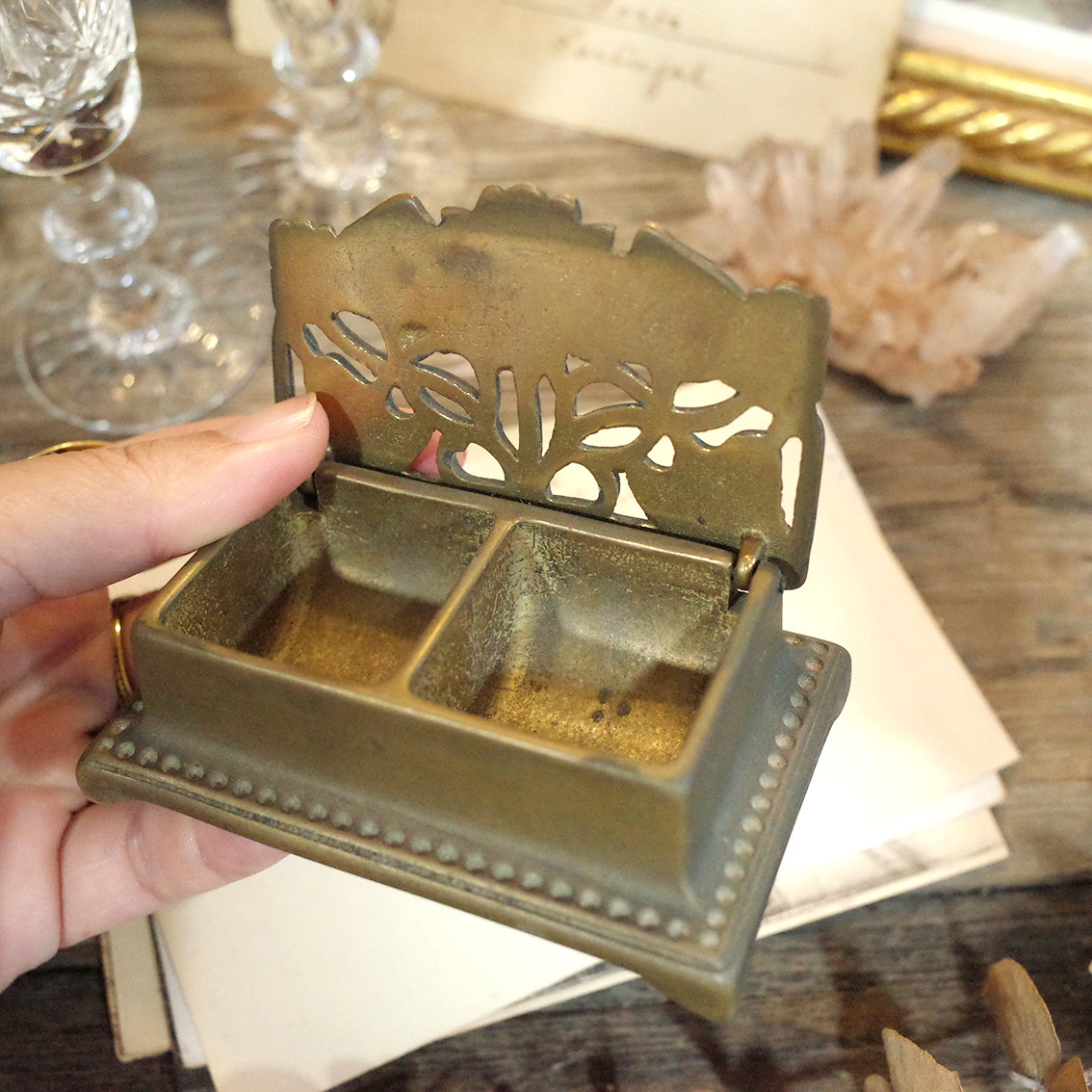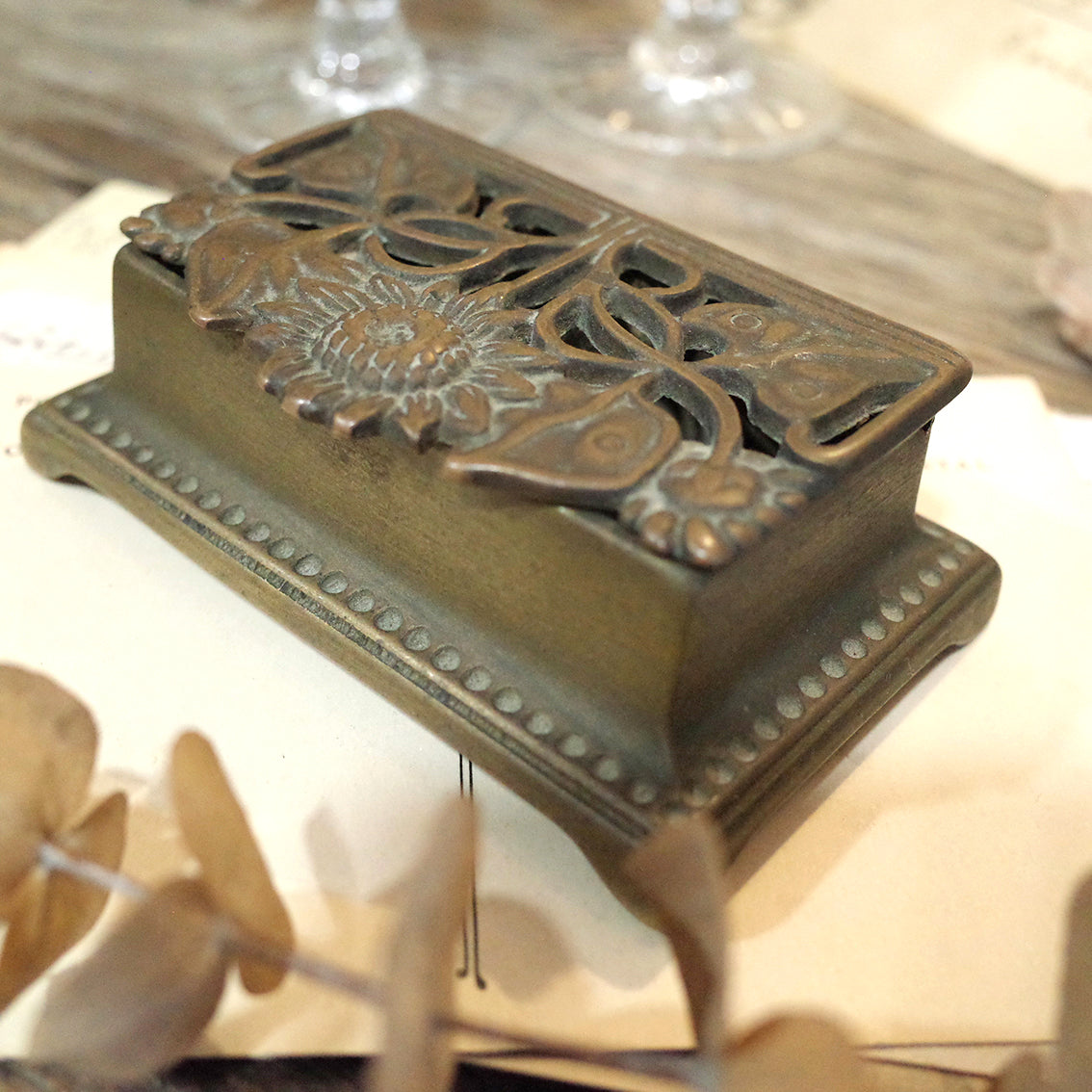 葡萄牙老件.銅製太陽花向日葵簍空浮雕郵票盒.文具小收納盒