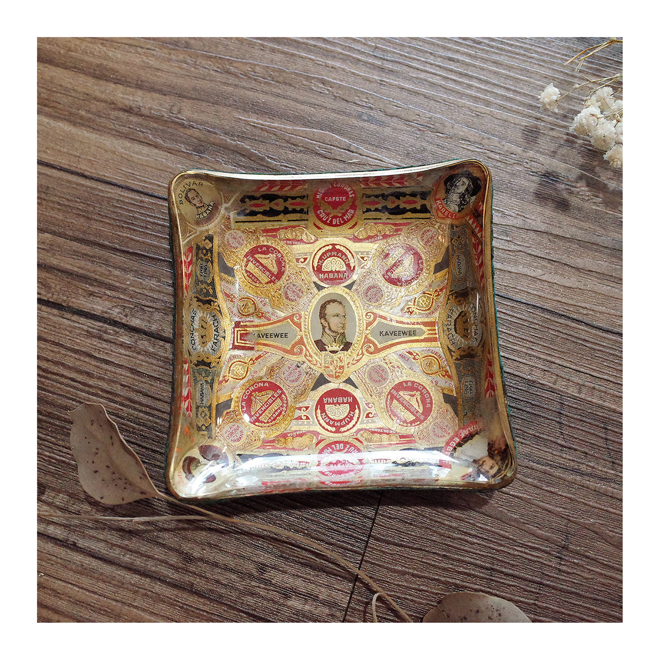 收藏價值:各知名經典品牌雪茄環編排疊加裝飾,紅、金主色配色充滿vintage魅力,
