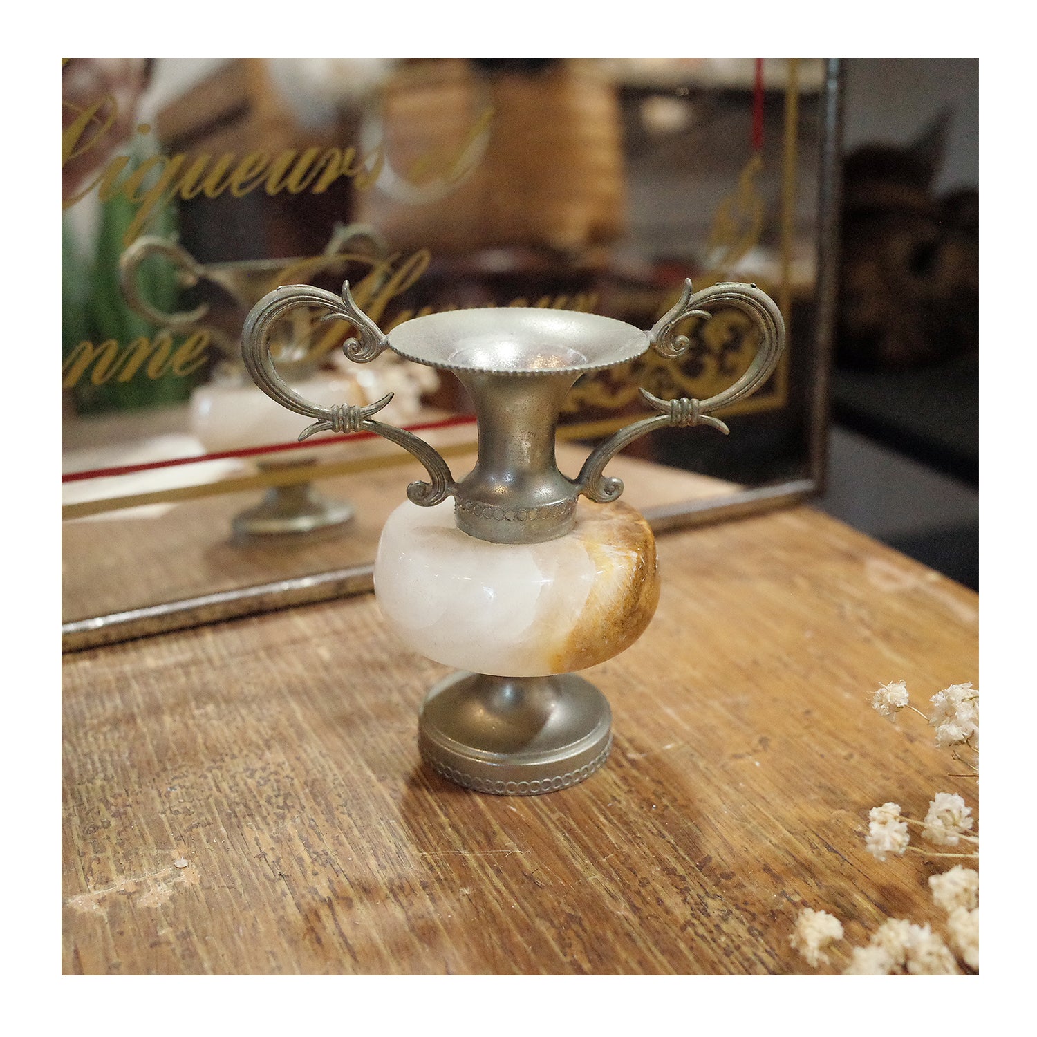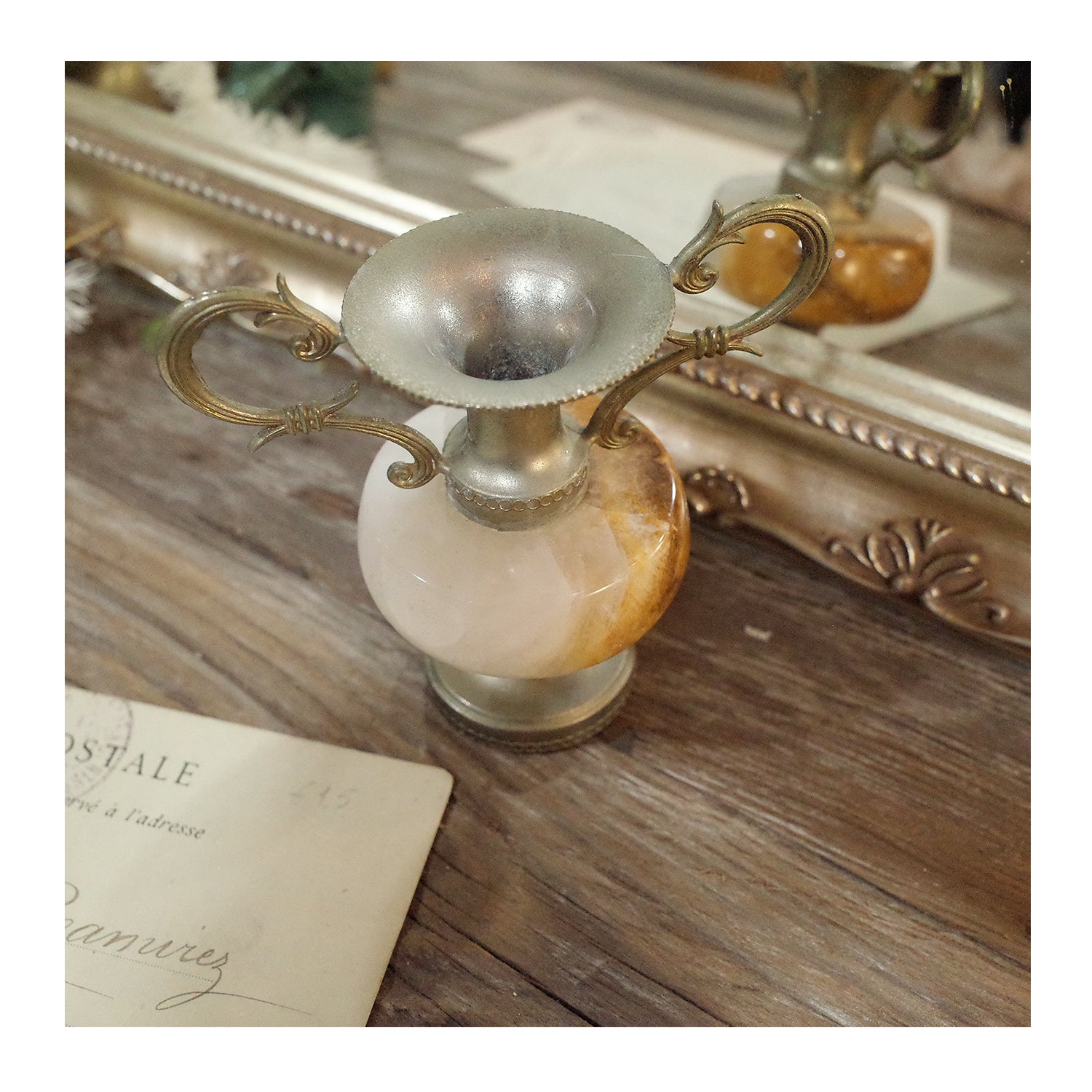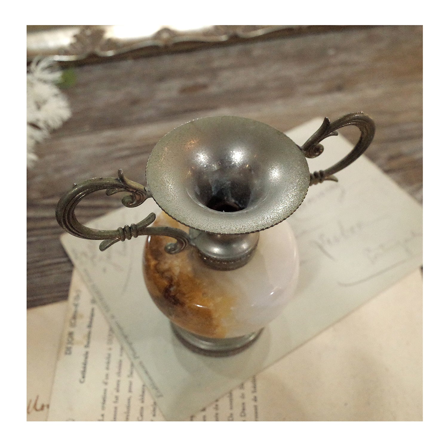 德國老件.瑪瑙大理石雙耳金屬小花器.1950's鍍銀小花瓶.復古微型花瓶.擺飾擺件#收藏品