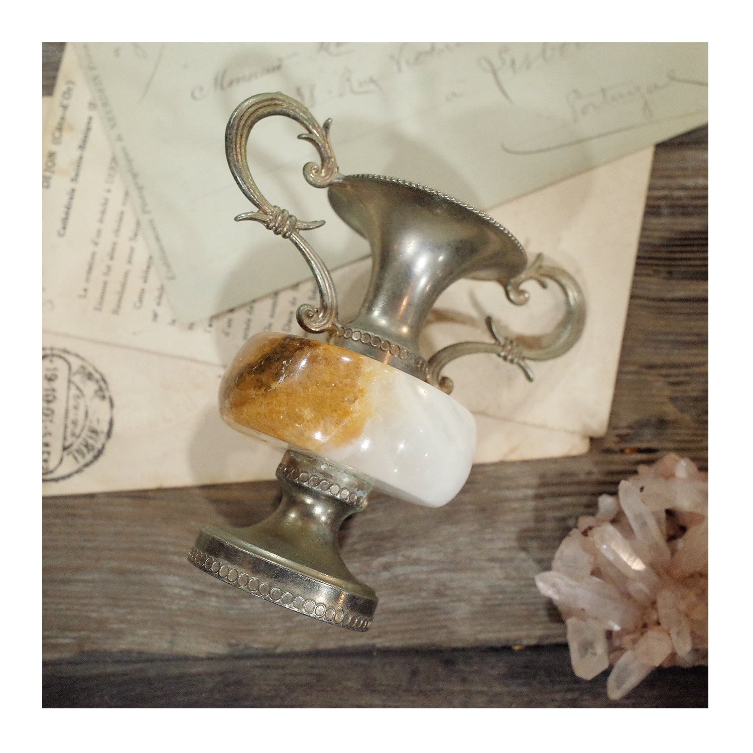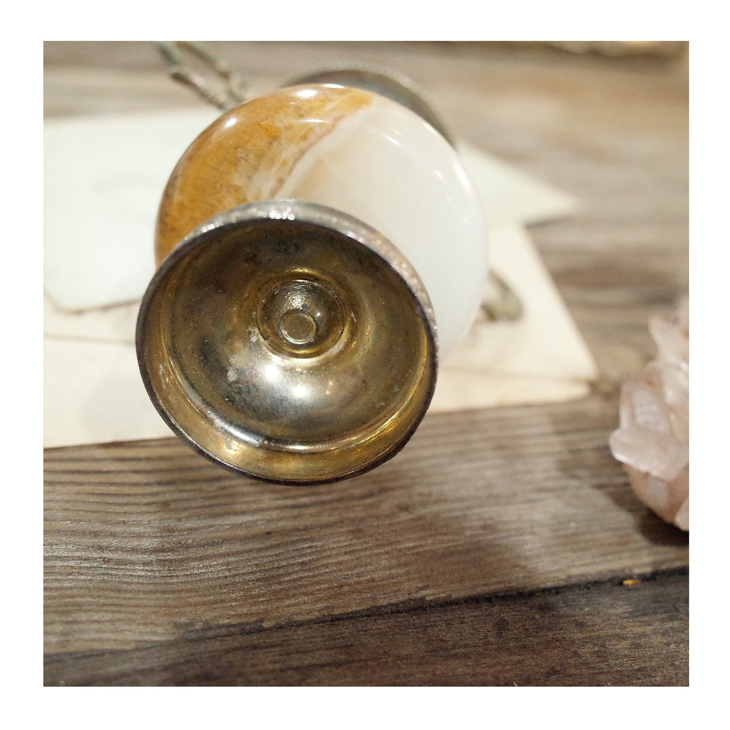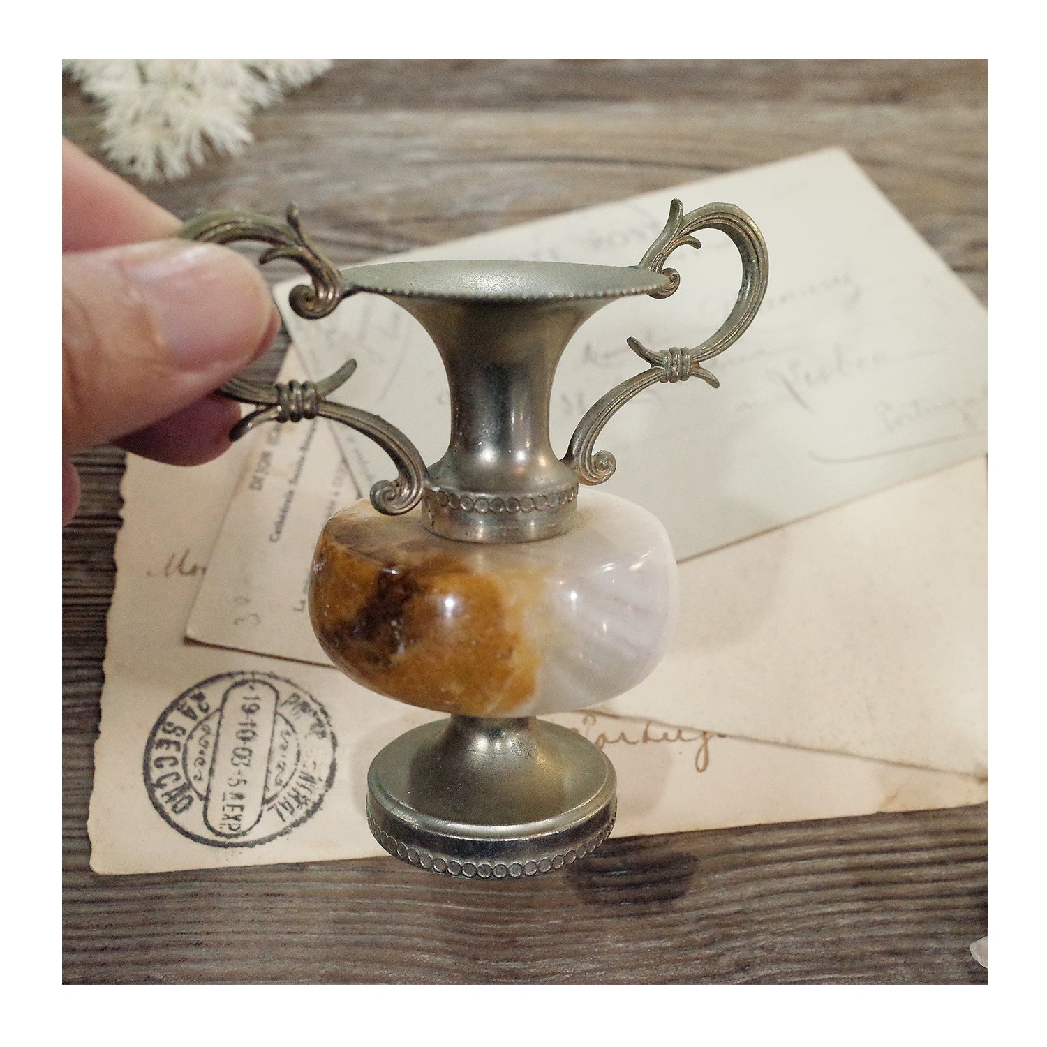 德國老件.瑪瑙大理石雙耳金屬小花器.1950's鍍銀小花瓶.復古微型花瓶.擺飾擺件#收藏品